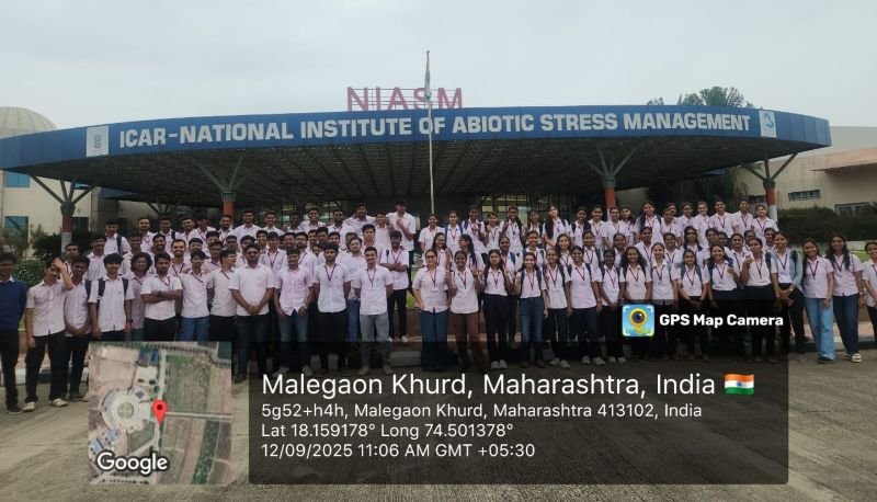 The Department of Computer Engineering at VPKBIET, Baramati organized an industrial visit to ICAR–National Institute of Abiotic Stress Management (NIASM), Baramati, on 12th September 2025. The primary objective of this visit was to bridge the gap between classroom learning and real-world applications by exposing students to interdisciplinary research in agriculture, particularly focusing on abiotic stress management and how computer engineering tools can support advancements in this domain.