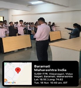 Mr. Deepak Sonawane gave the preface of the program. Mr. Santosh Waghmode (FE Mech) expressed spontaneous thoughts during his elocution. Later, the SDO Mr. Hanumant Borate, Dean Academics Dr. Anil Hiwarekar and HoD, FE Dr. Aparna Sajjan guided the students. 72 students witnessed the session. Two students Shruti Ghadage SE (Comp) and Priti Sarwade BE (IT) presented their creativity in the form of the sketches of Shivaji Maharaj.